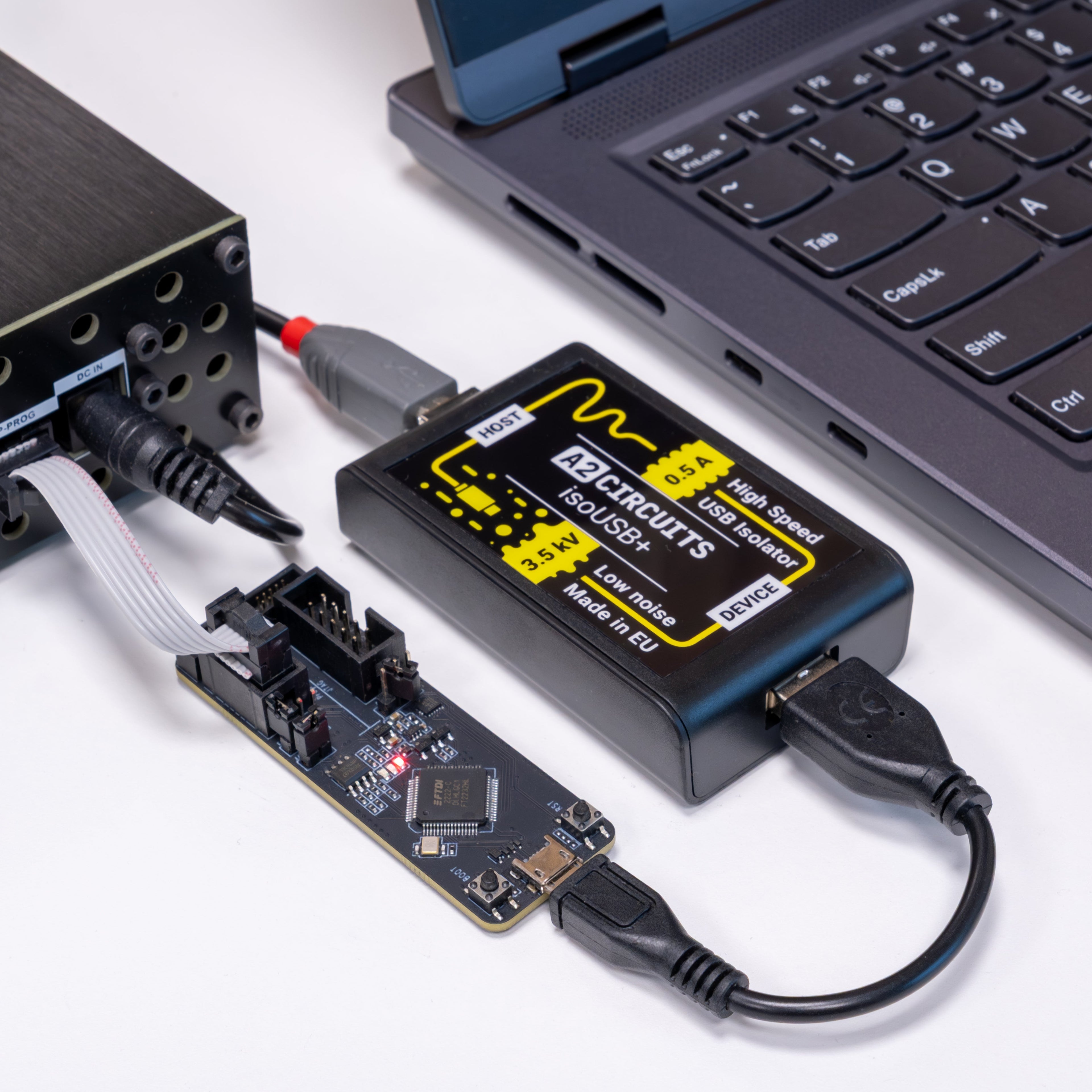 A2circuits isoUSB+ zabezpiecza Twój komputer przed przepięciami, zwarciami i wyładowaniami elektrostatycznymi. Idealne także, gdy tworzysz prototypy z wysokim napięciem i zależy Ci na Twoim sprzęcie.